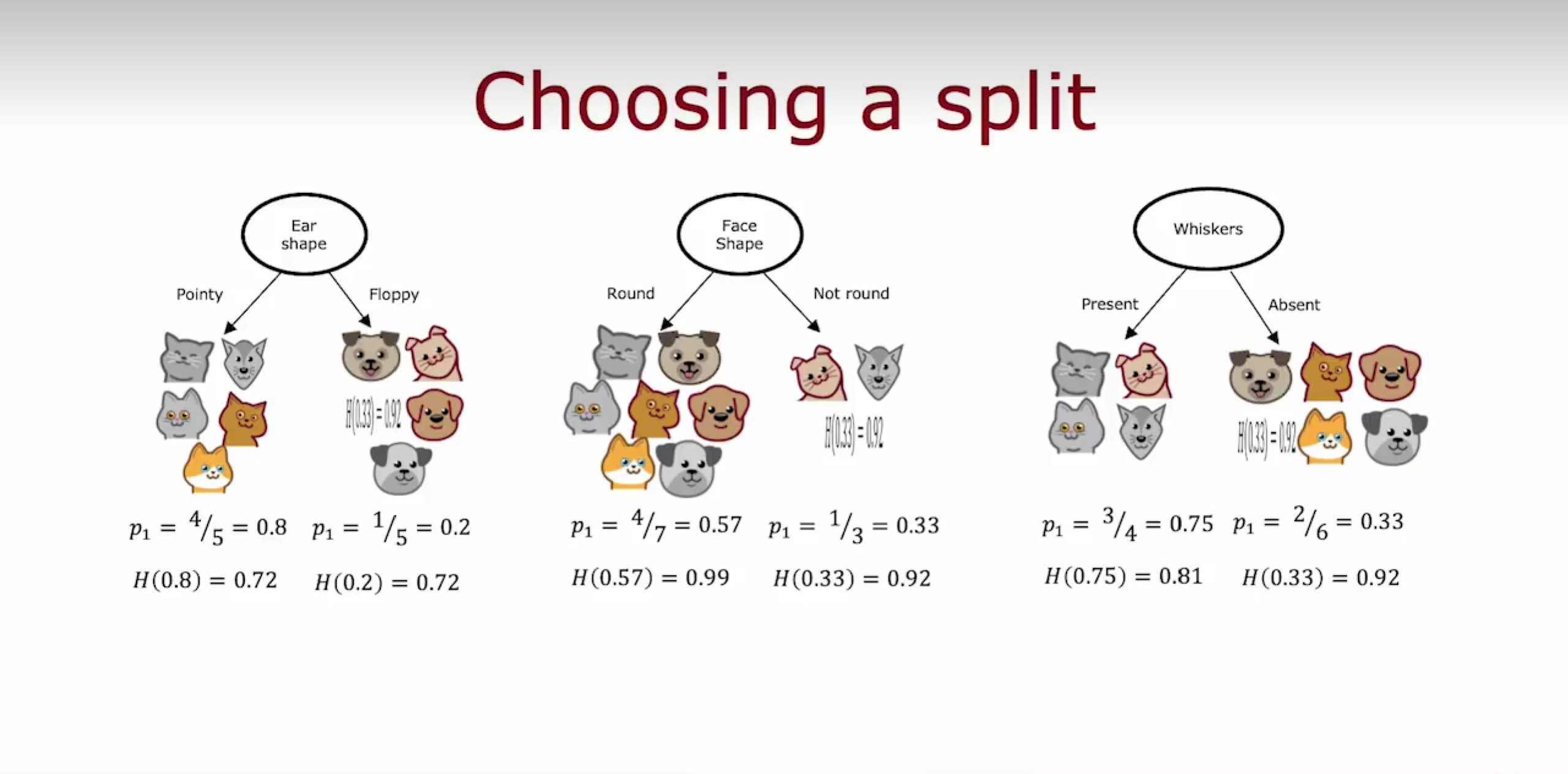 有了熵,我们就可以通过计算熵的变化来确定选择哪个特征作为分裂依据最合适,而信息增益(information gain)可以衡量由于分裂而导致的树中的熵的减少。