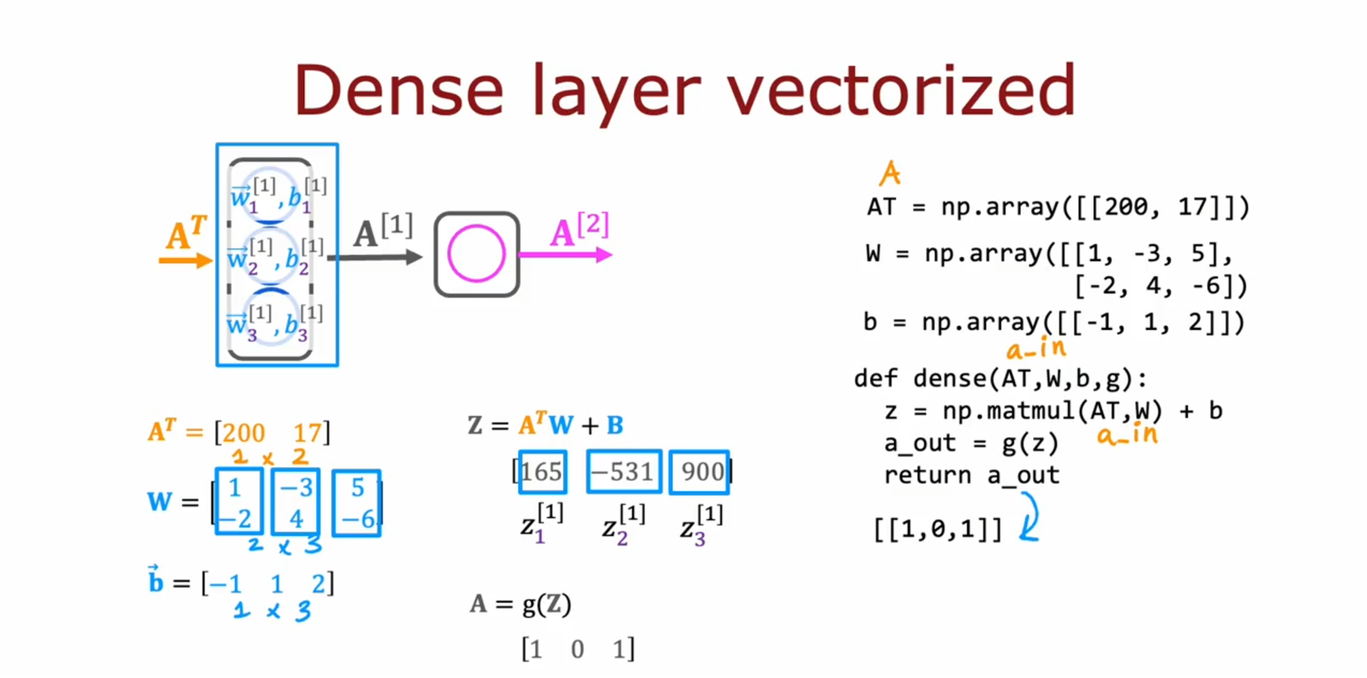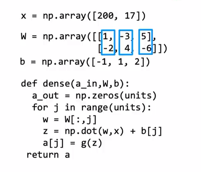 在之前的学习中,我们在构建密集层dense时,再其内部使用for循环来取出矩阵W的每一列后在使用sigmoid函数进行计算: