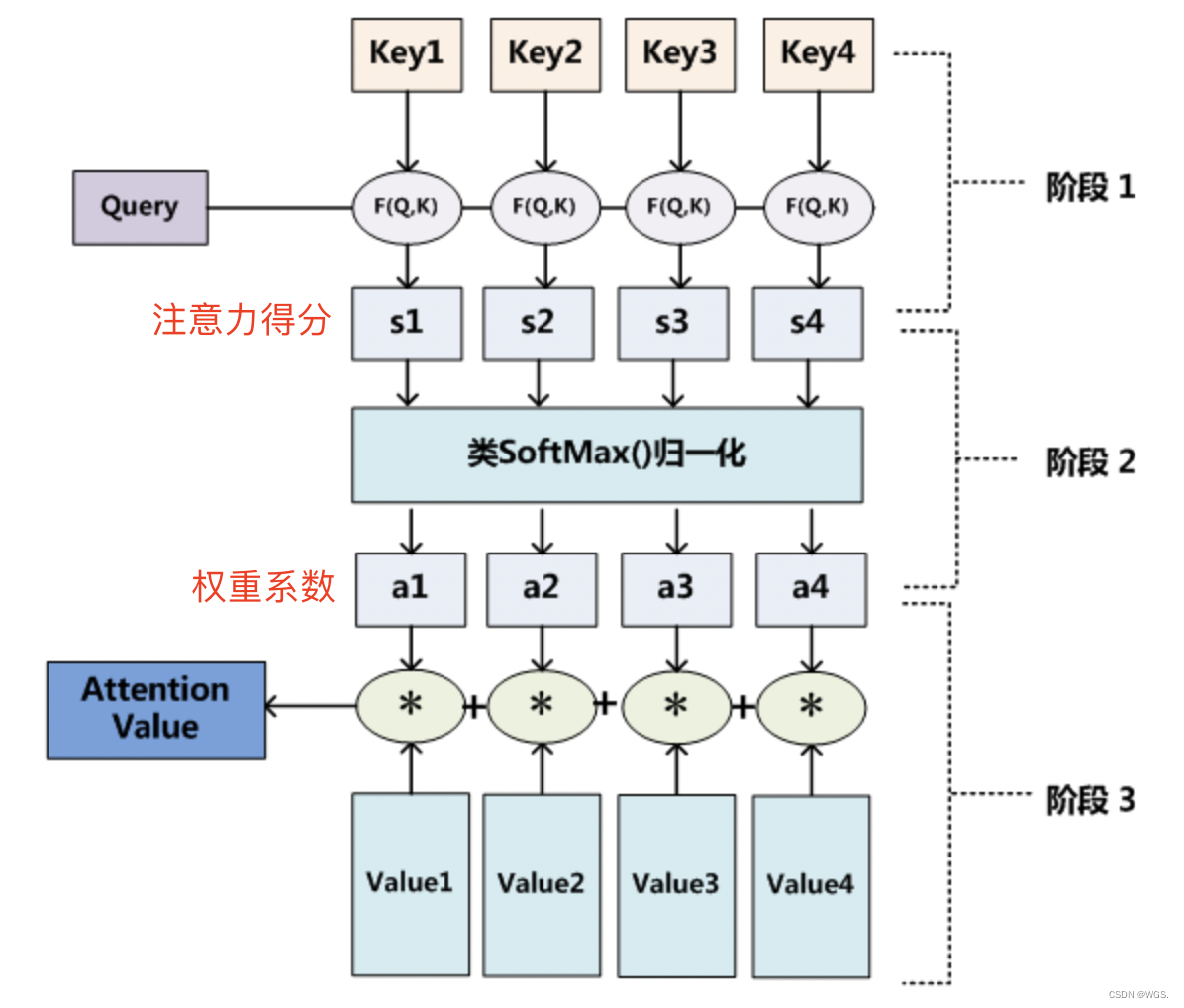 其中:W Q 、 W K 、 W V W_Q、W_K、W_V W Q 、 W K 、 W V 均为可学习的权重矩阵。