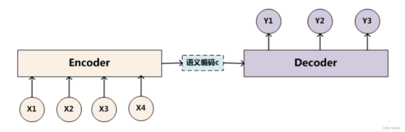 注意力机制简单来说就是抓重点。比如我们要将一句英语“Tom chase Jerry”翻译为中文“汤姆追杰瑞”,那么在翻译过程中,我们会将英文单词通过编码器encoder编码为语义编码c,在通过解码器decoder解码为中文输出。