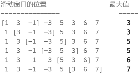 输入:nums = [1,3,-1,-3,5,3,6,7], k = 3