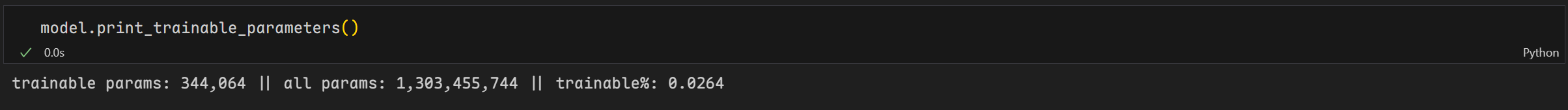 经过优化后可训练参数有344,064个,相当于原来参数1,303,455,744个的0.0264%