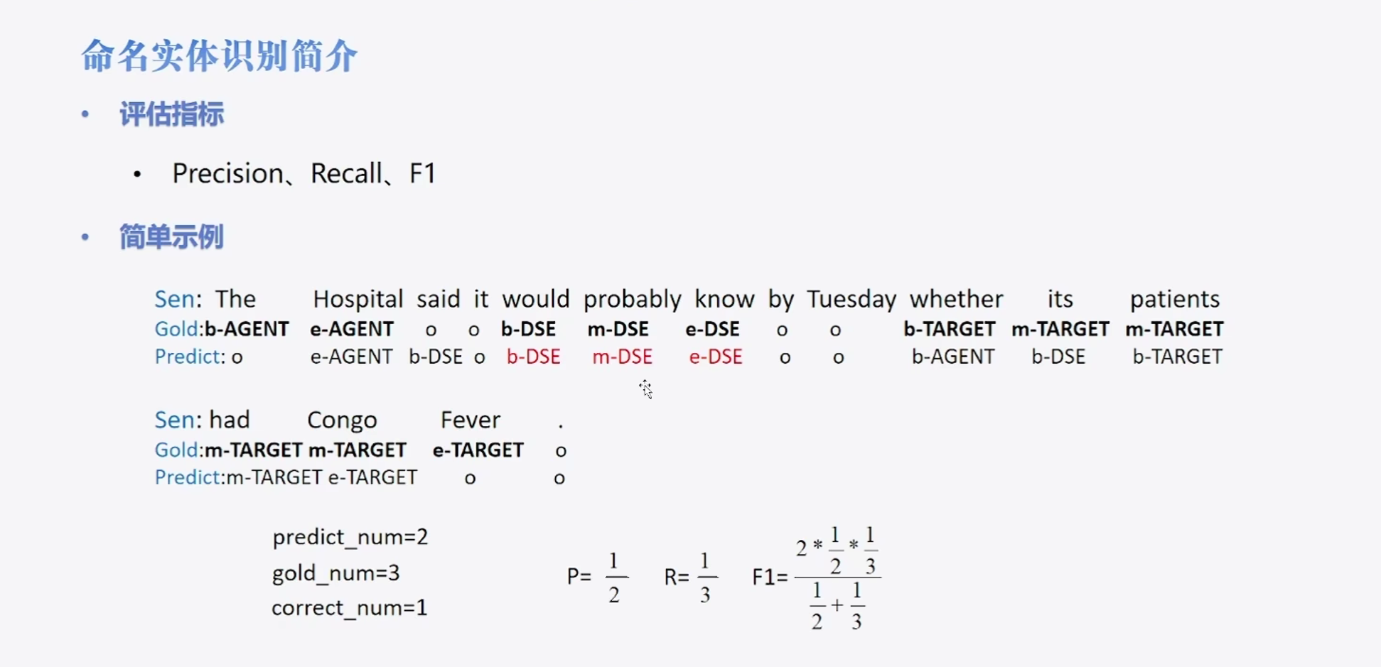 标记 说明 B-Person 人名开始 I-Person 人名中间 B-Organization 组织名开始 I-Organization 组织名中间 O 非命名实体 -