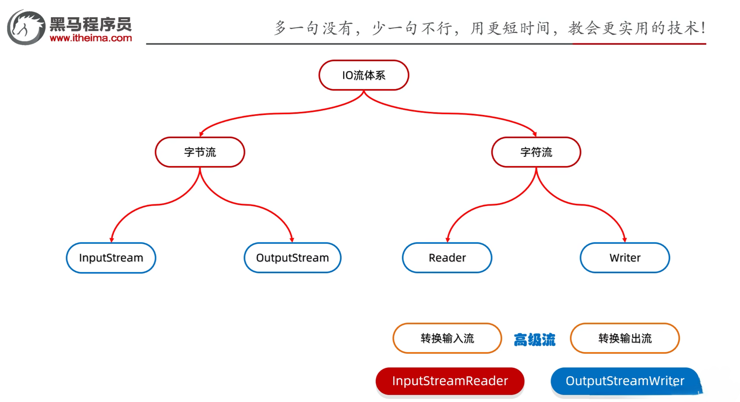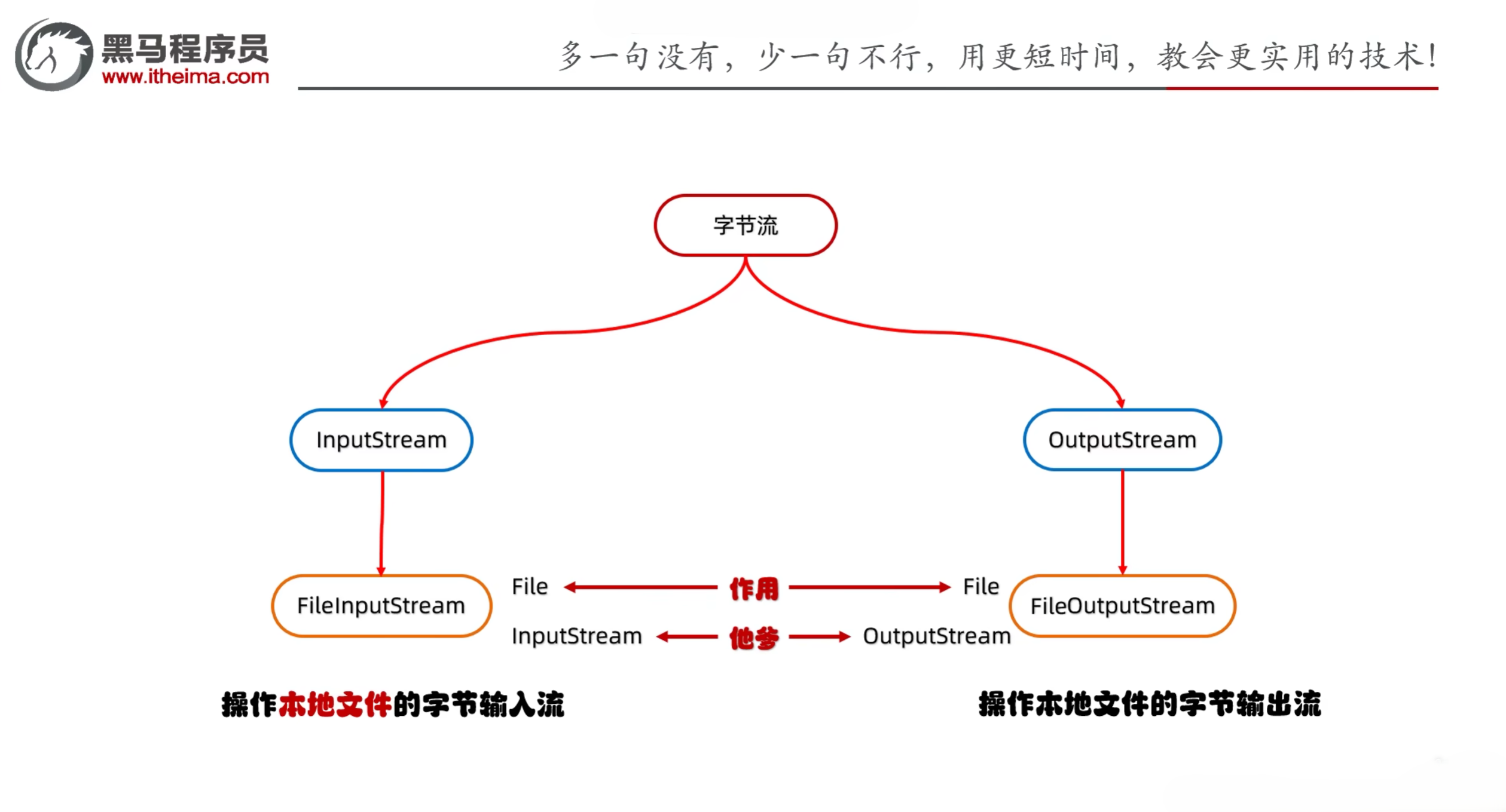 - 字节流:以字节为单位读写数据,适合处理所有类型的文件(图片、音频、视频等)
