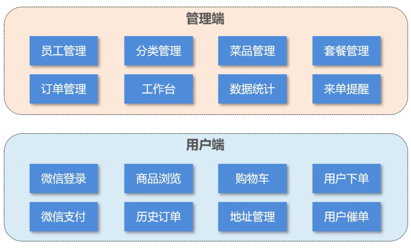 功能架构:体现项目中的业务功能模块