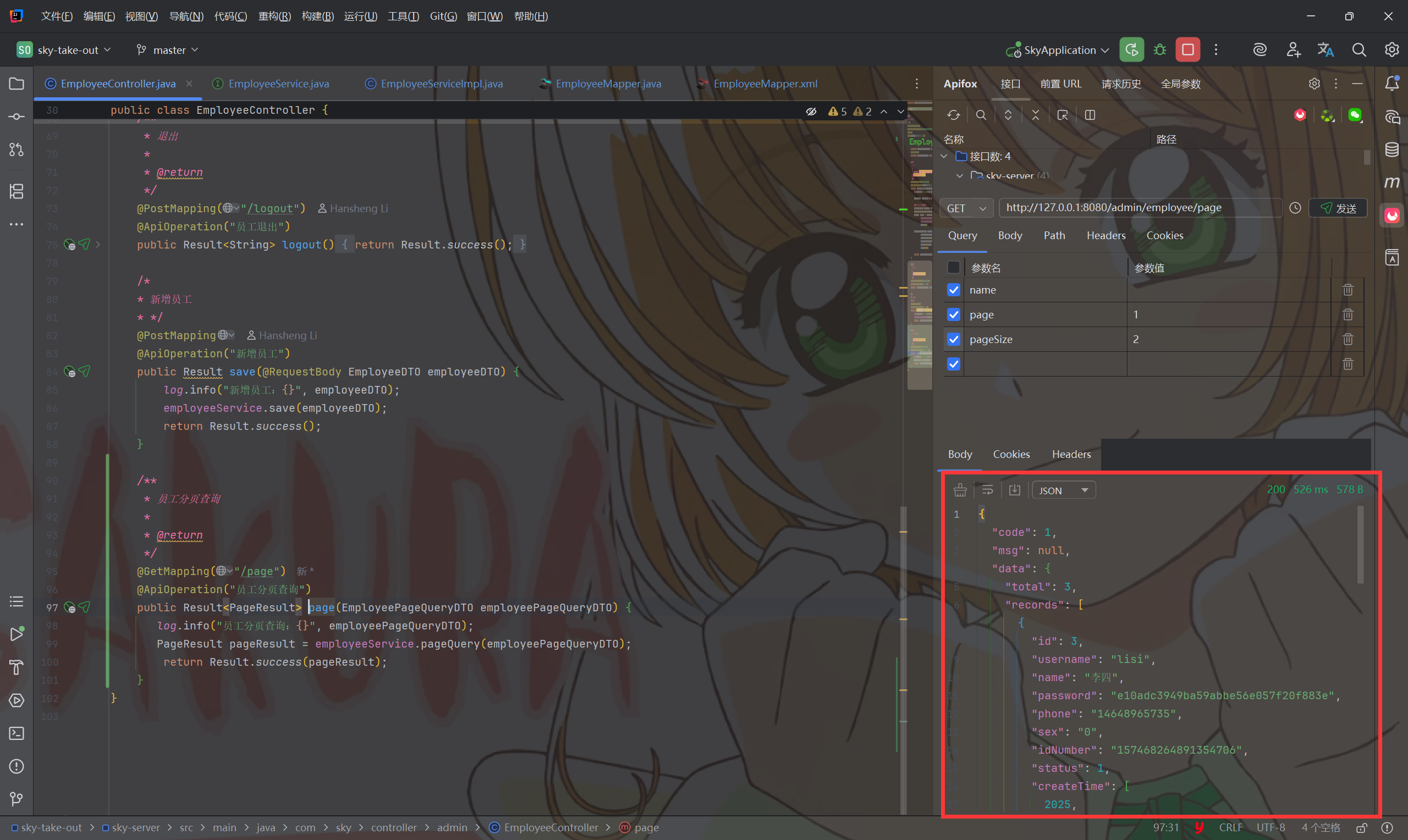 1 | <select id="pageQuery" resultType="com.sky.entity.Employee"> |