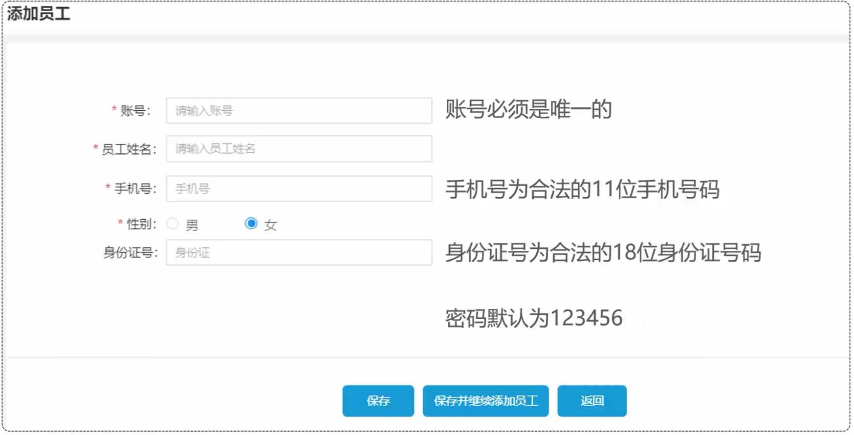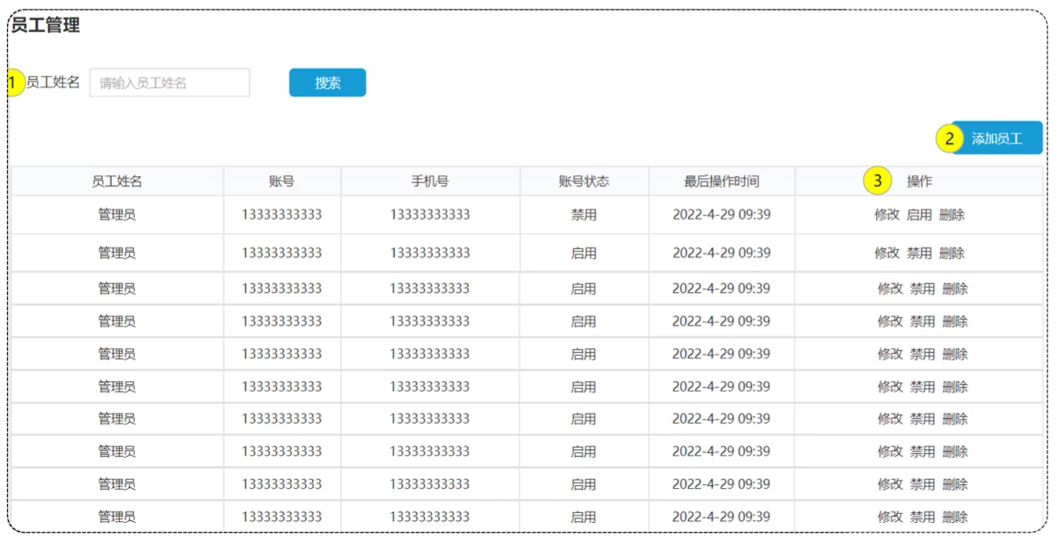 - 可以对状态为“启用”的员工账号进行“禁用”操作