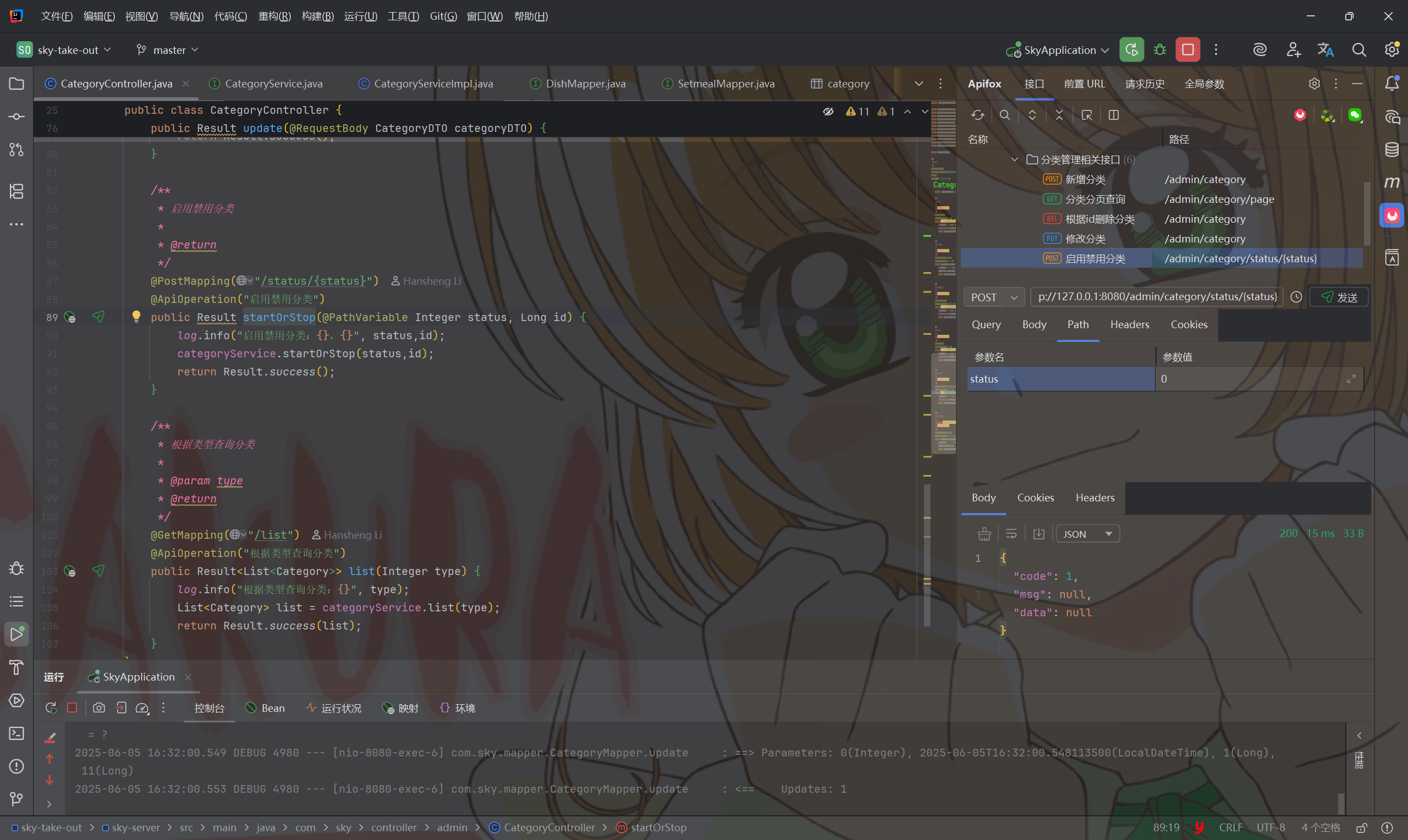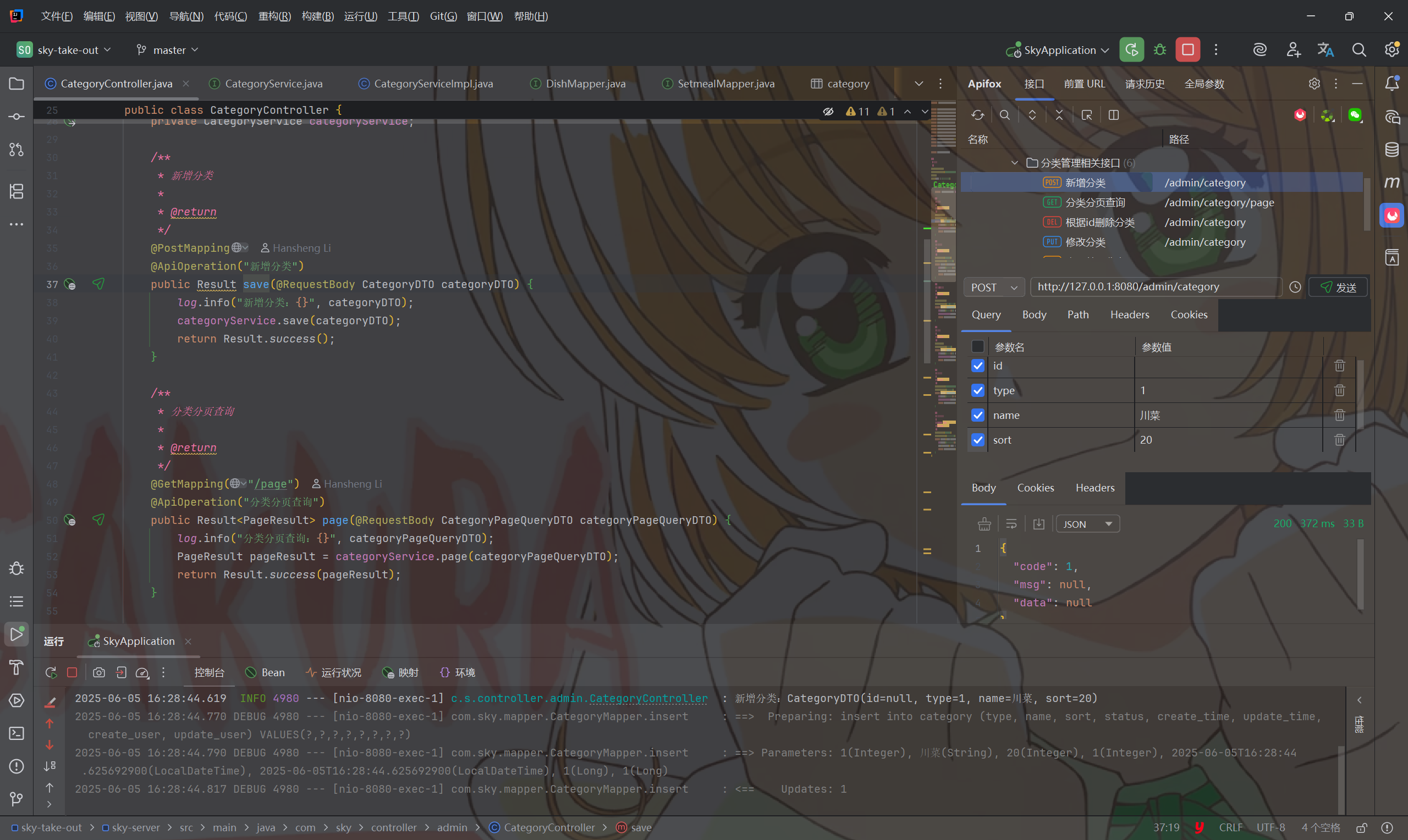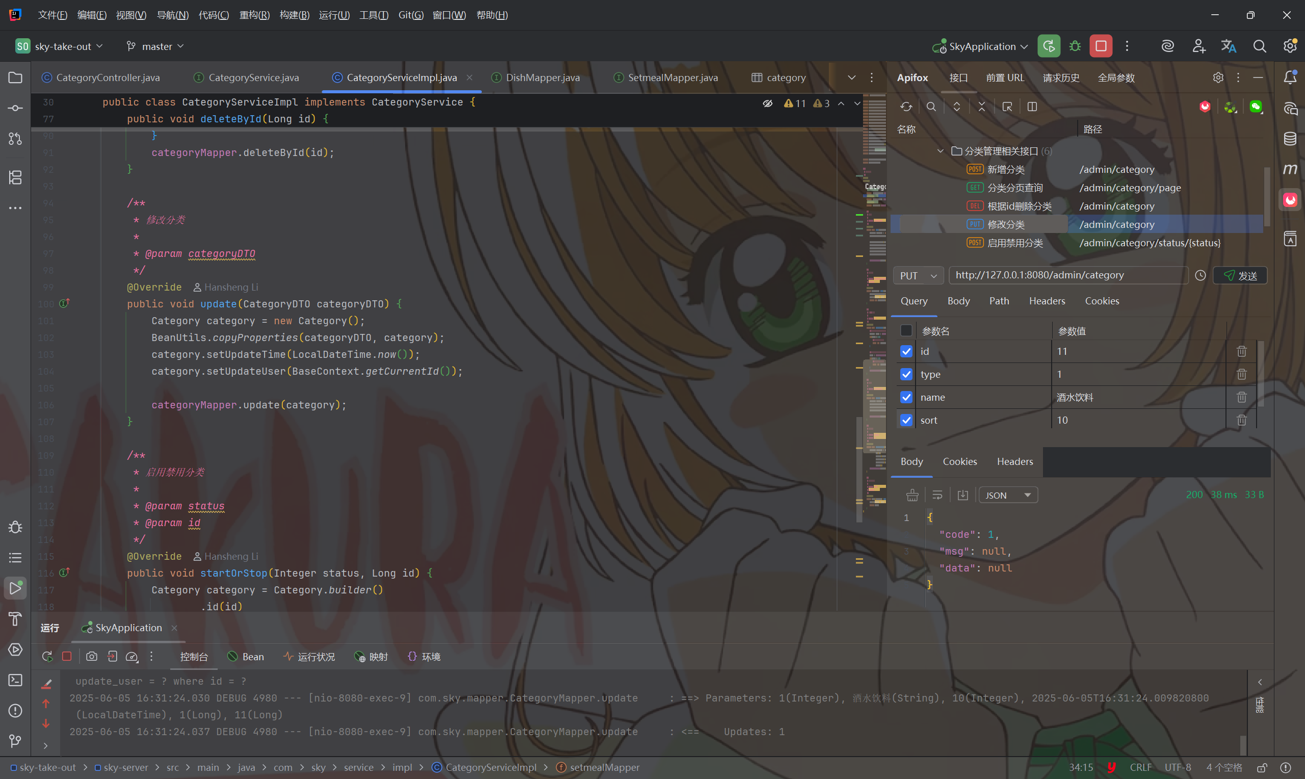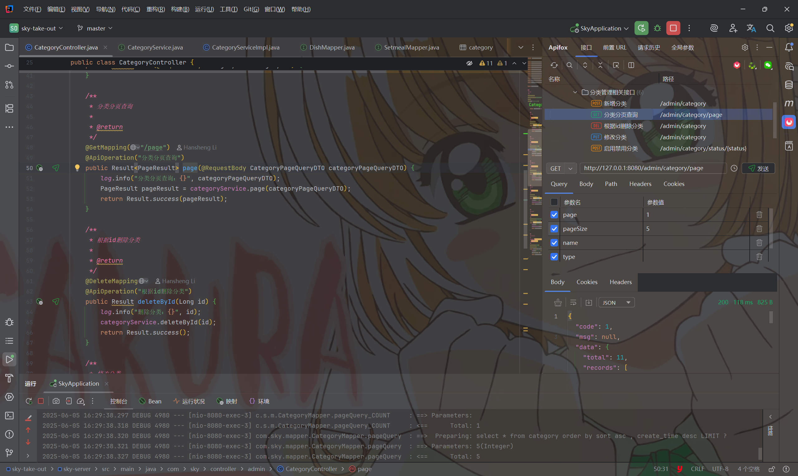 - 注意点:需要注意查询当前分类是否关联了菜品或套餐,如果关联了就抛出业务异常