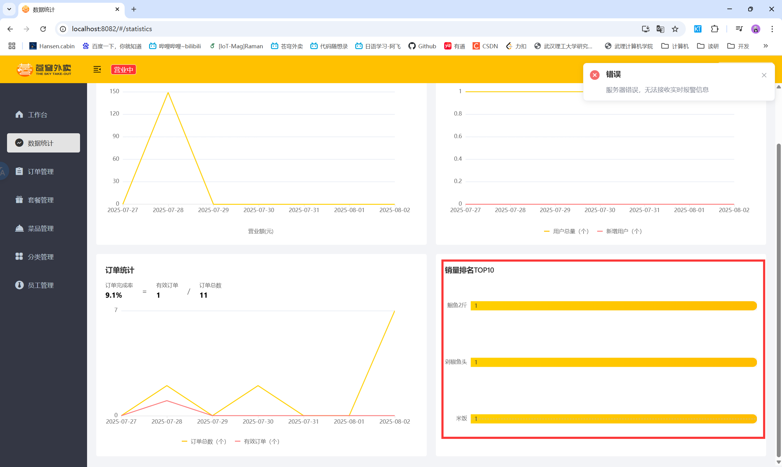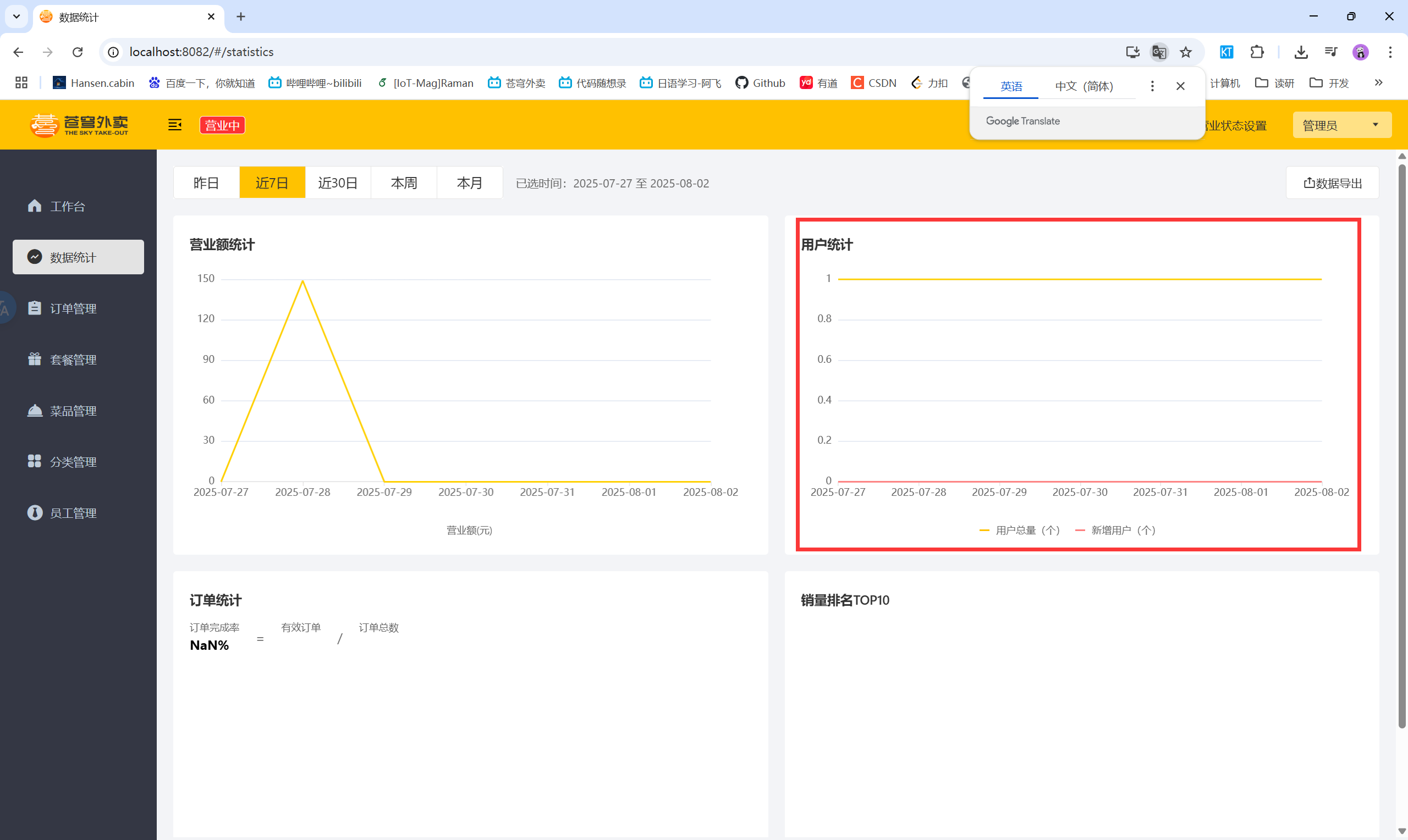 Integer orderCount = getOrderCount(beginTime, endTime, null); orderCountList.add(orderCount); Integer validOrderCount = getOrderCount(beginTime, endTime, Orders.COMPLETED); validOrderCountList.add(validOrderCount); }