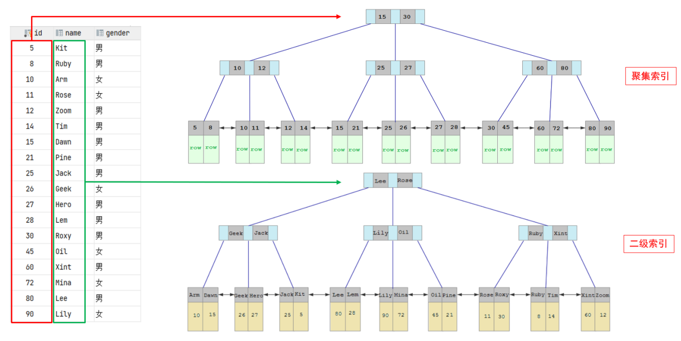 - DB_ROLL_PTR:回滚指针,指向这条记录的上一个版本,用于配合undo log,指向上一个版本。