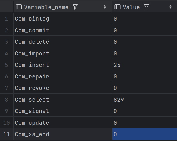 - –count:显示数据库及表的统计信息(数据库,表 均可以不指定)