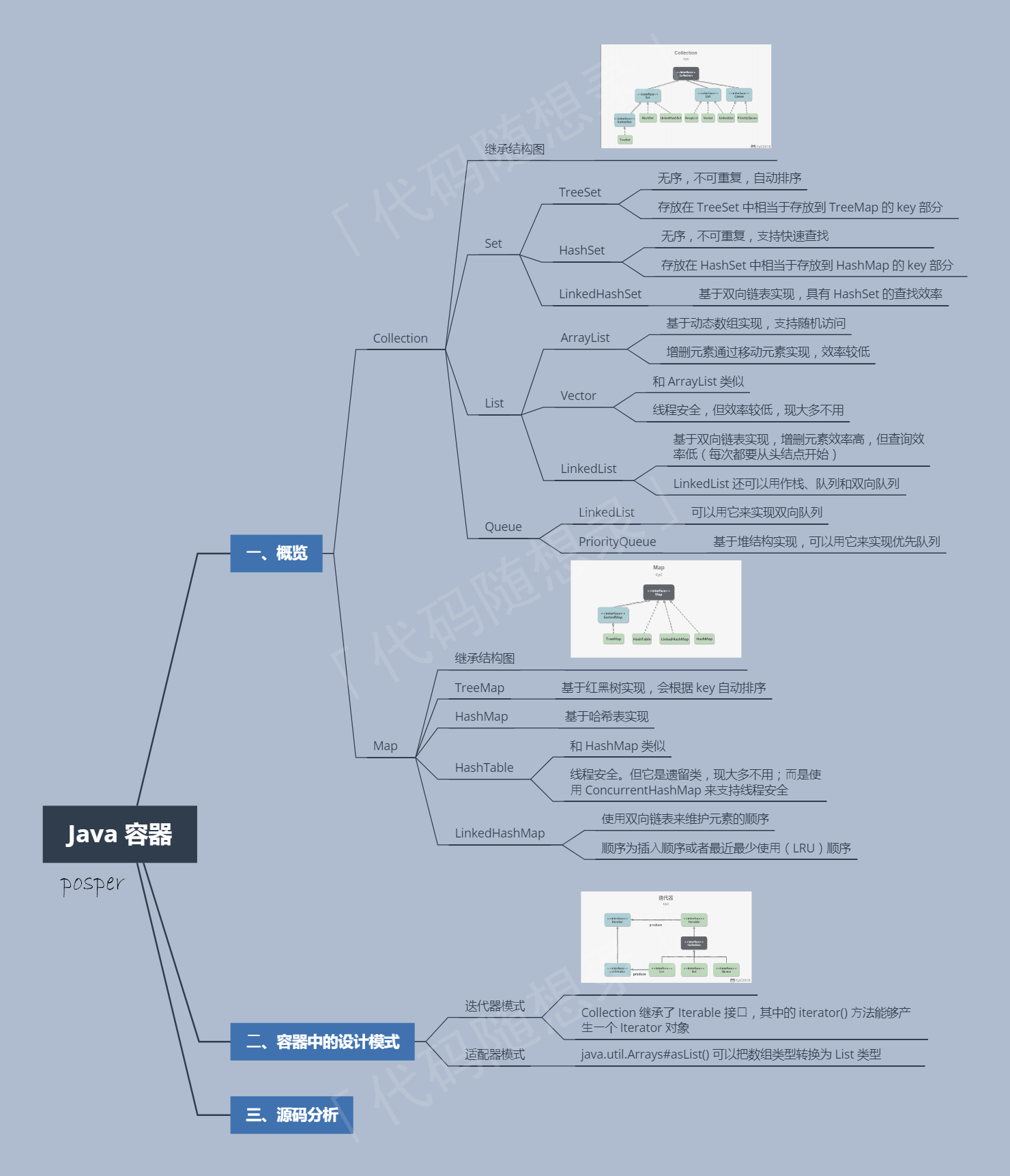 Map和Collection这两个接口派生出来的。Collection接口又派生出三个重要的接口Set,List,Queue。 -