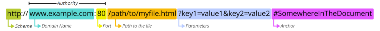 /开始,表示从服务器上根目录开始进行索引到的文件路径,上图中要访问的文件就是服务器目录下的/path/to/myfile.html。 - 参数(Parameters):URL中可以包含一些参数,这些参数通常以